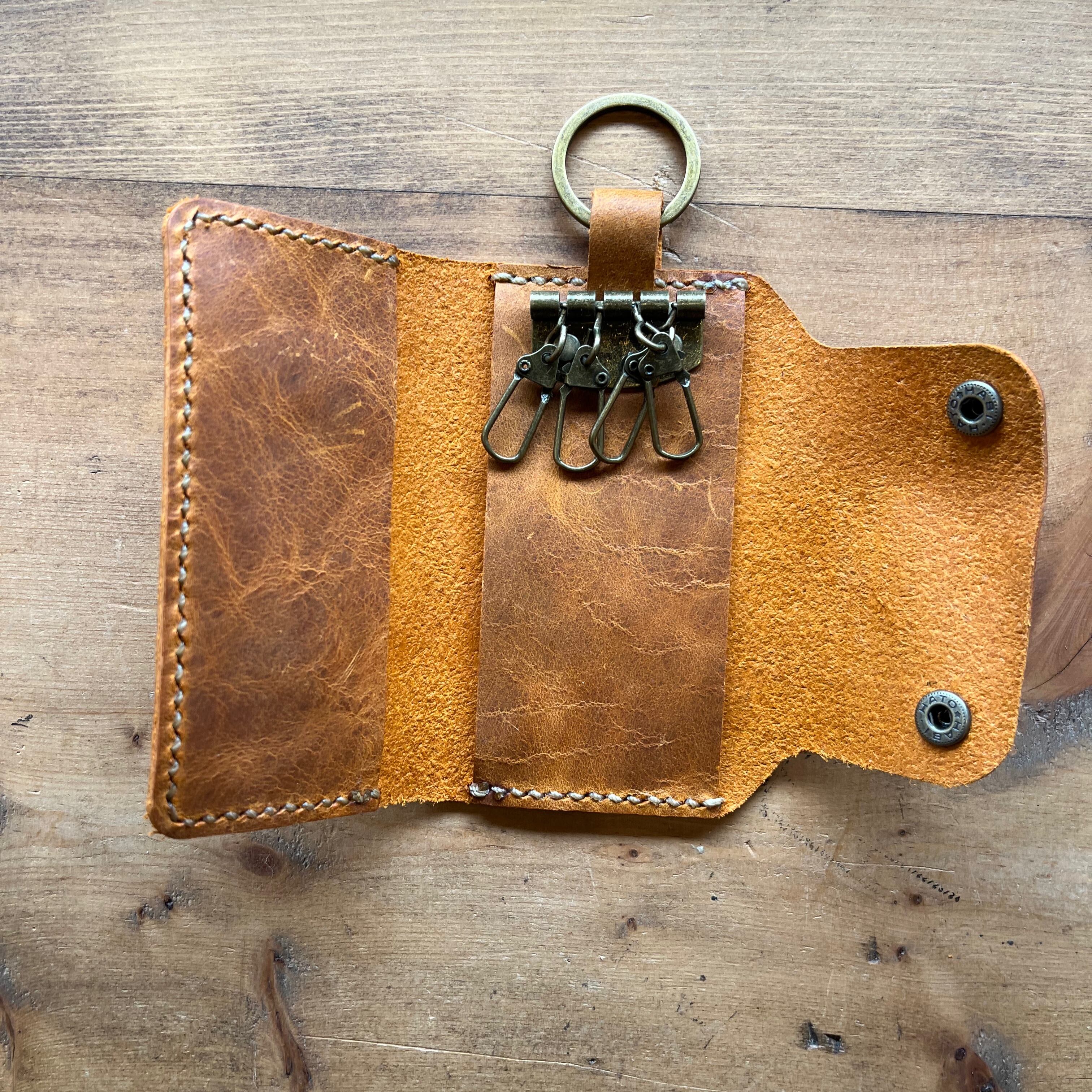 ■4連キーフックのキーケース■カードポケット付き■キャメル■
