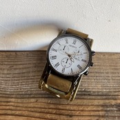 直径4cmの大きな文字盤に渋みのあるカーキ色の太ベルトで存在感のある腕元に…