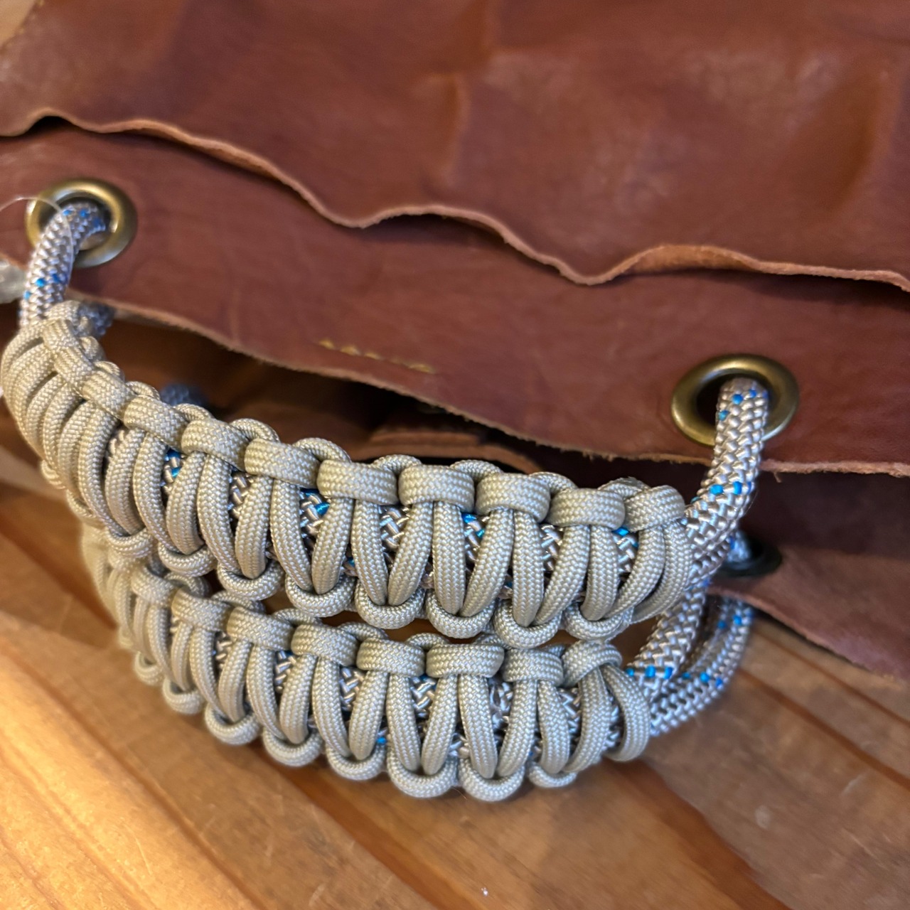 パラコードを編んだ持ち手のトートバッグです。