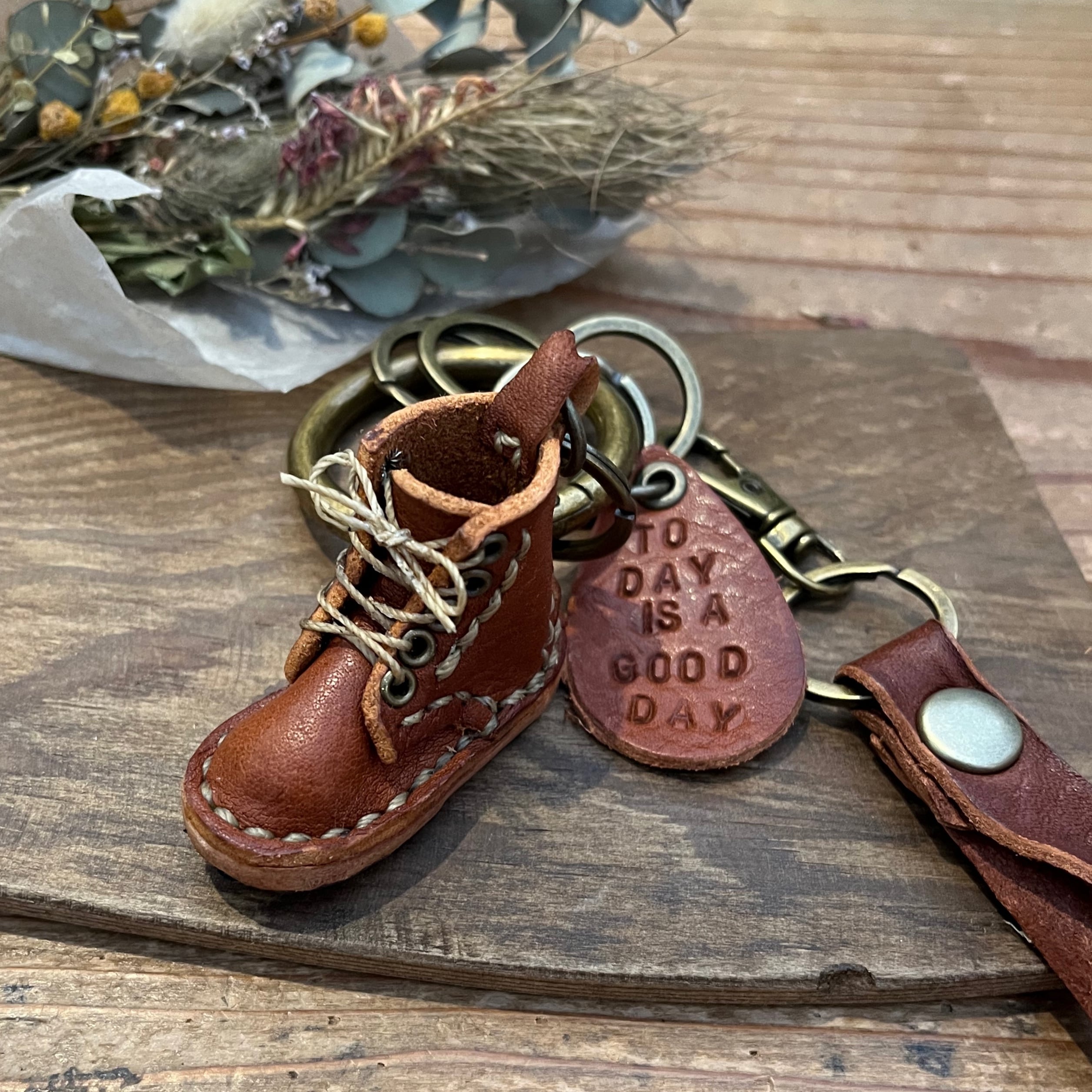 ミニチュアサイズのブーツをチャームにしたカラビナキーリングです。